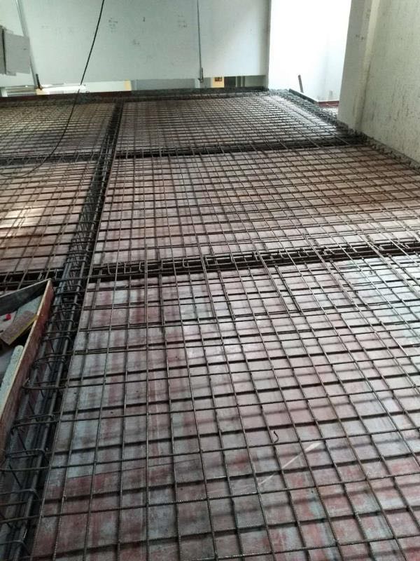 4、綁扎鋼筋:長(zhǎng)鋼筋14號(hào),短鋼筋12號(hào),要雙層。小挑梁鋼筋16號(hào),大挑梁鋼筋20號(hào),大于10平方要加強(qiáng)鋼筋,20平方以上最好加橫梁。樓梯都要加橫梁。(要考慮布線管,以便于將來(lái)做電線排線)