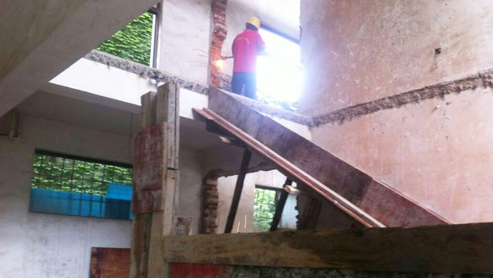 現(xiàn)澆樓板最關(guān)鍵的步驟就是植筋,選擇好的植筋膠,開孔的深度,洞孔的干凈度,植筋的深度是植筋質(zhì)量好壞的關(guān)鍵, 將鋼筋植入混凝土結(jié)構(gòu),相當(dāng)于結(jié)構(gòu)體加上了預(yù)埋鋼構(gòu)件。對植筋后的鋼筋抗拔試驗(yàn)表明,對不同強(qiáng)度等級的混凝土滿足植筋深度要求以后,可以將鋼筋拔斷。植筋用粘結(jié)材料抗腐蝕、耐老化、粘結(jié)強(qiáng)度遠(yuǎn)大于混凝土強(qiáng)度,且固化速度快,能使植入鋼筋盡早承受外力作用。